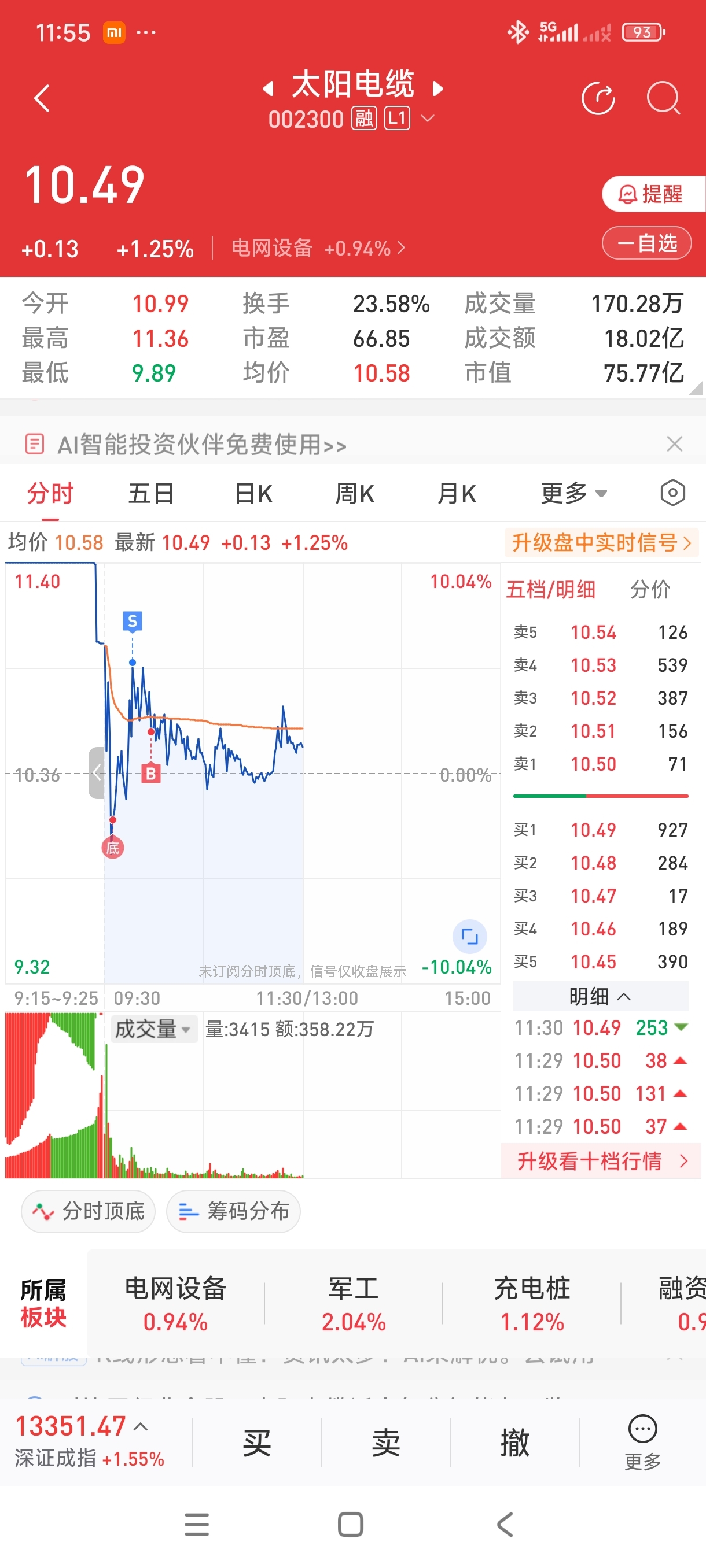 $太阳电缆(SZ002300)$ 心急了,就怕卖飞了,搞了5000股,赚了1000块也不错了