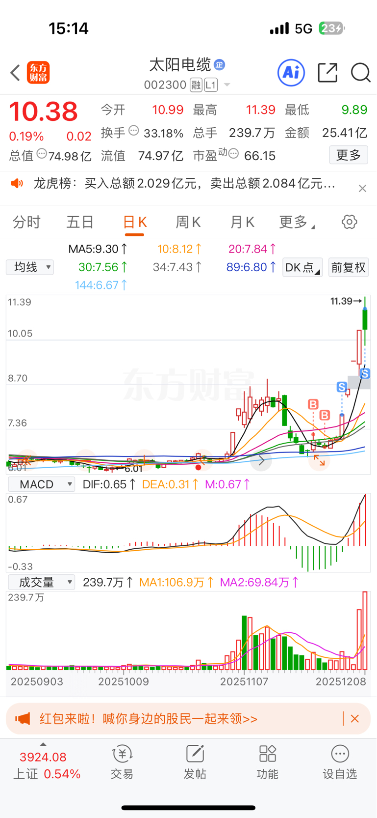 $太阳电缆(SZ002300)$ 兄弟们,我下车了,祝留下的发财!