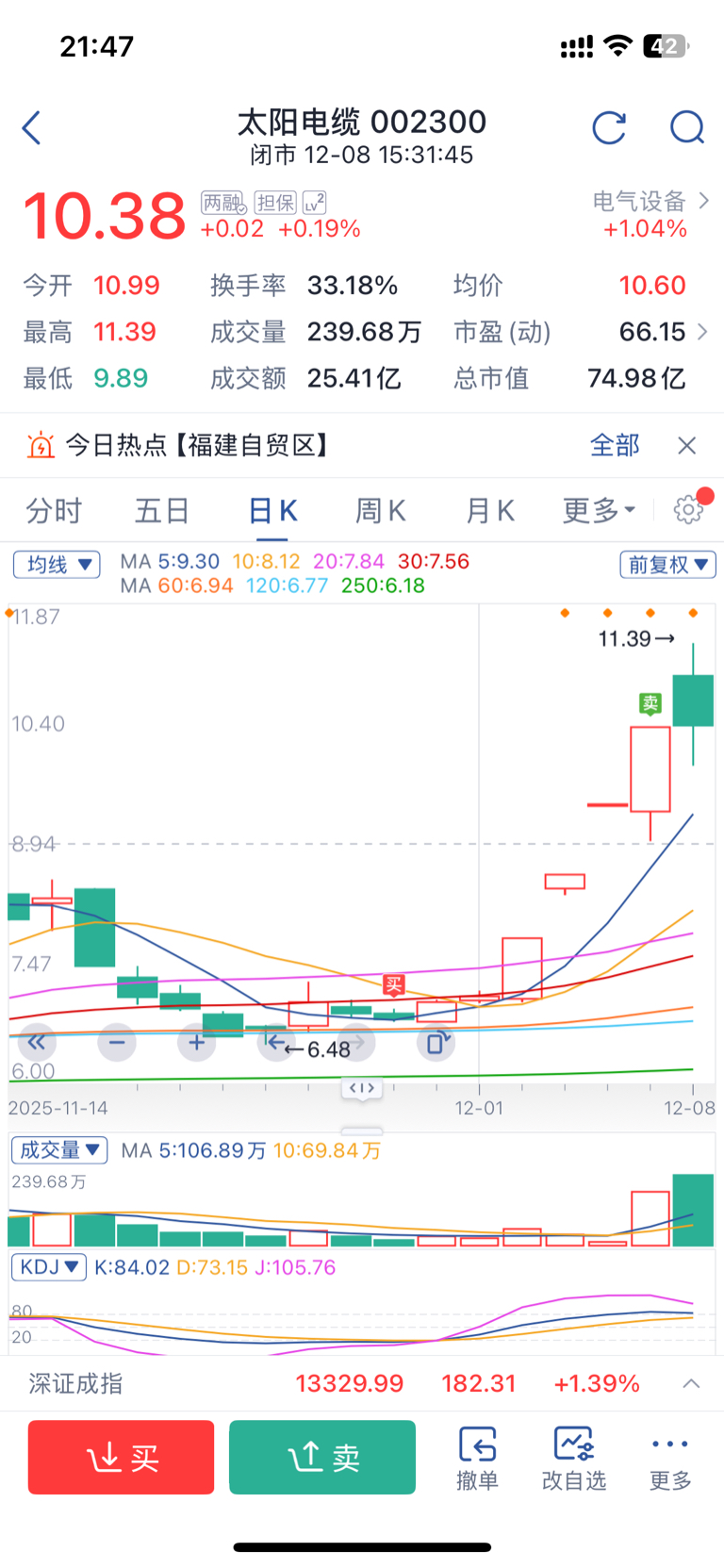$太阳电缆(SZ002300)$ 鱼尾行情就不吃了,留下的发财