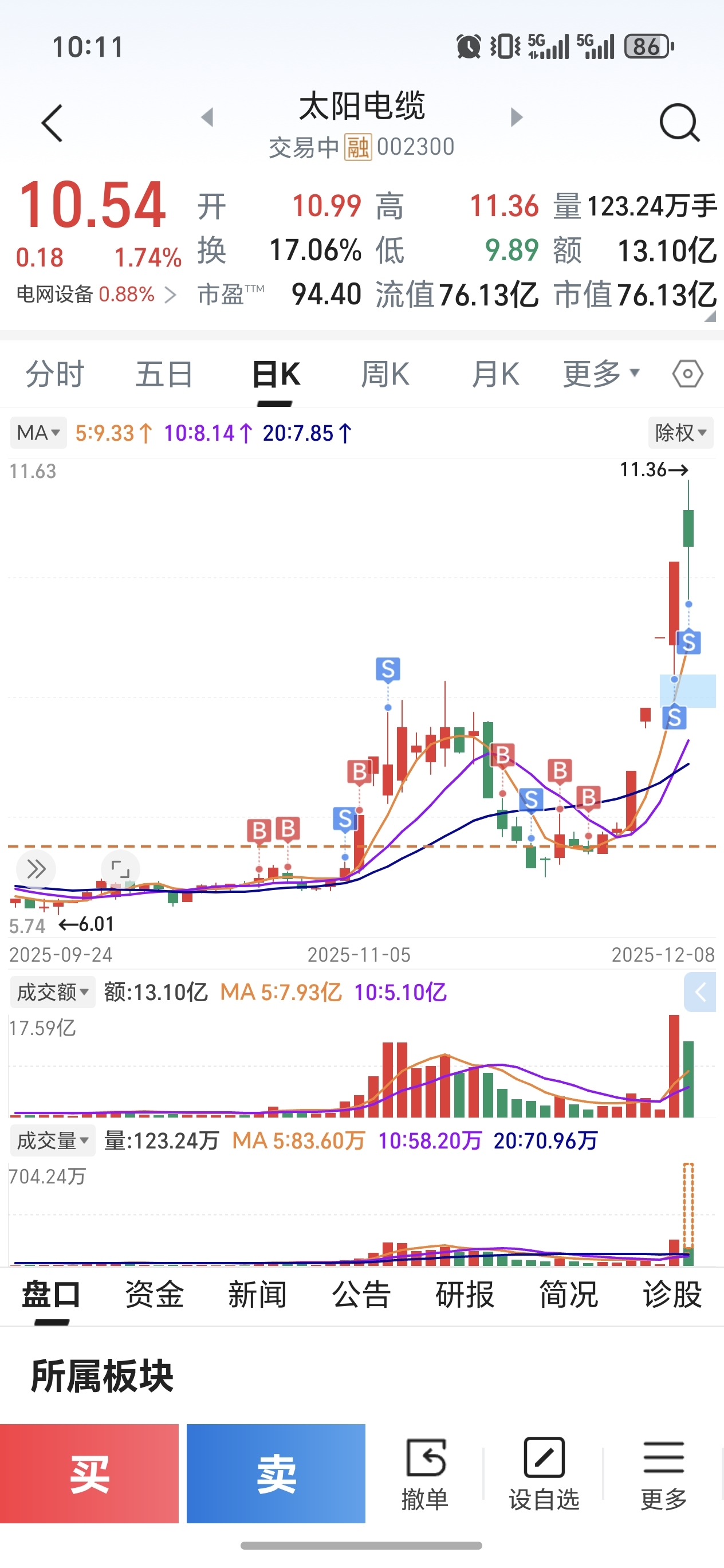 $太阳电缆(SZ002300)$ 兄弟们,我先撤了,留下的发财!