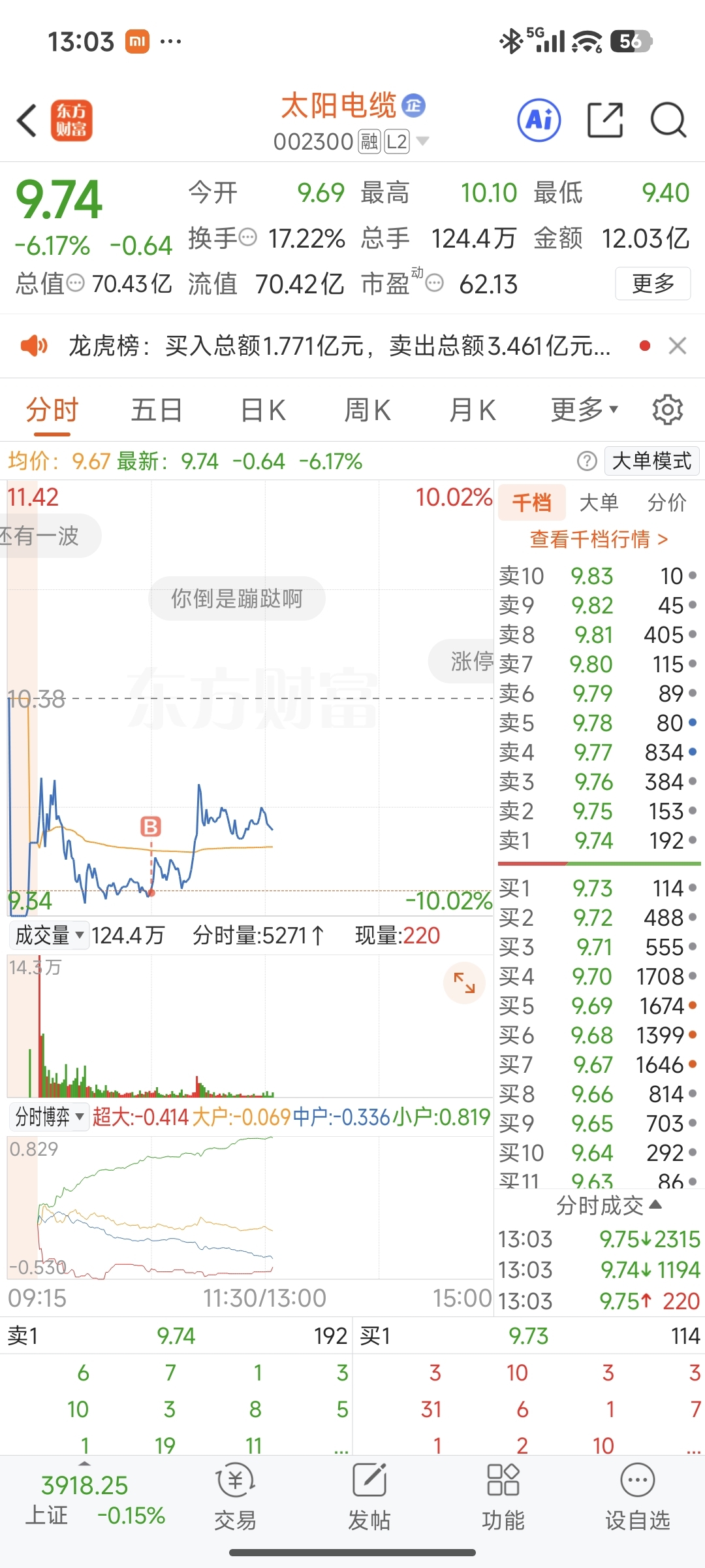 $太阳电缆(SZ002300)$ 反正早上我进来了,富贵险中求…