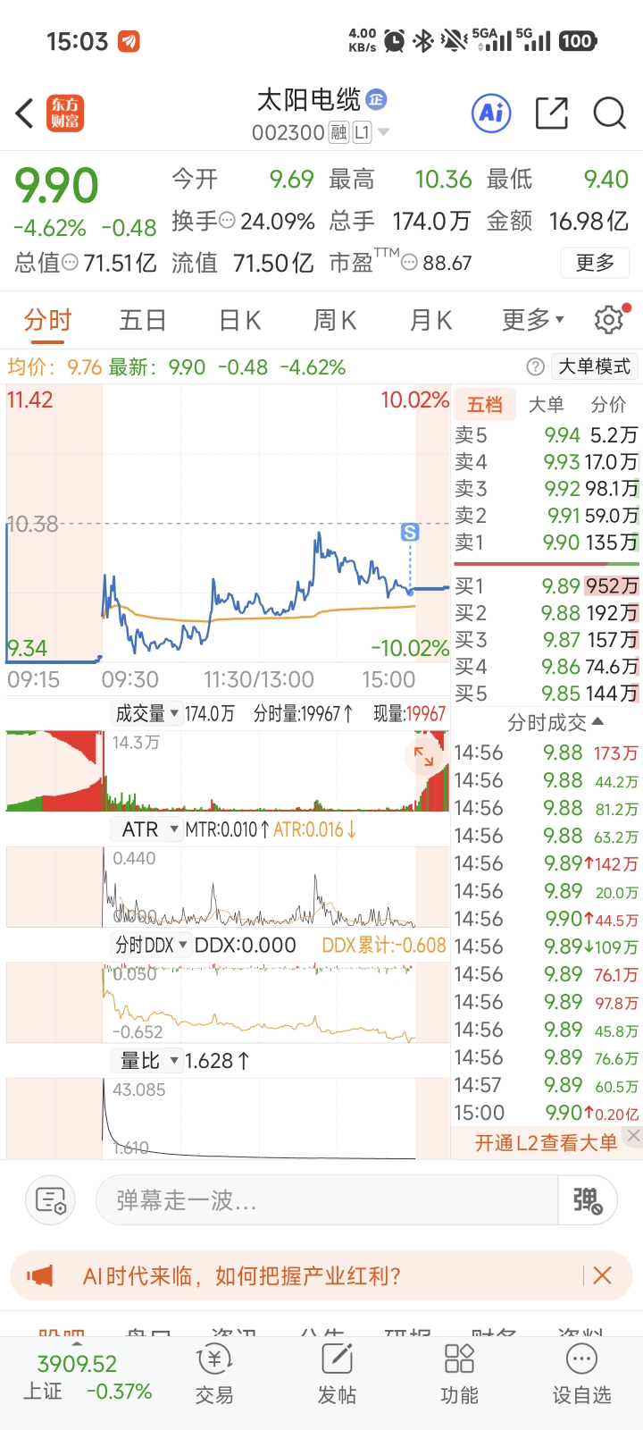 $太阳电缆(SZ002300)$ 清仓了,销户了!