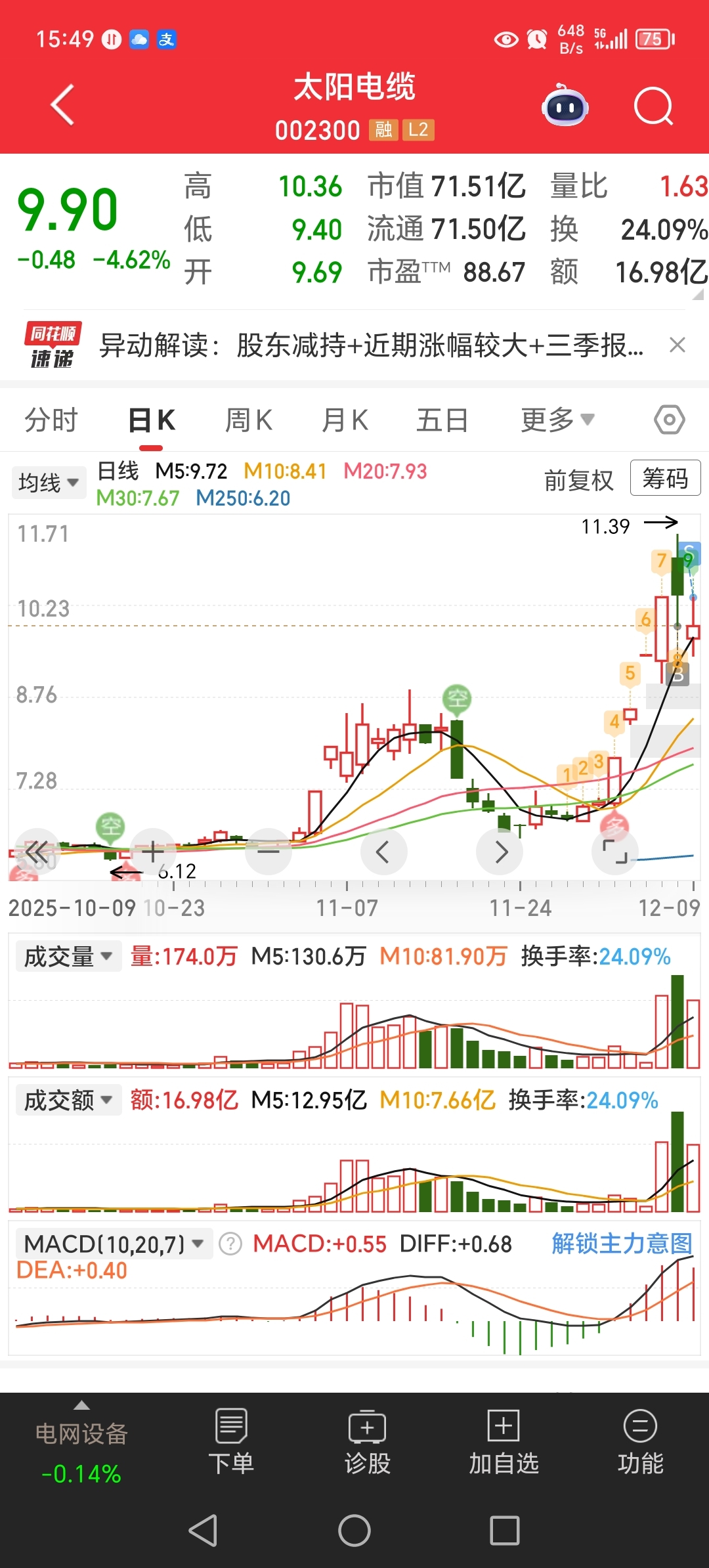 $太阳电缆(SZ002300)$ 太阳已走,回撤-8