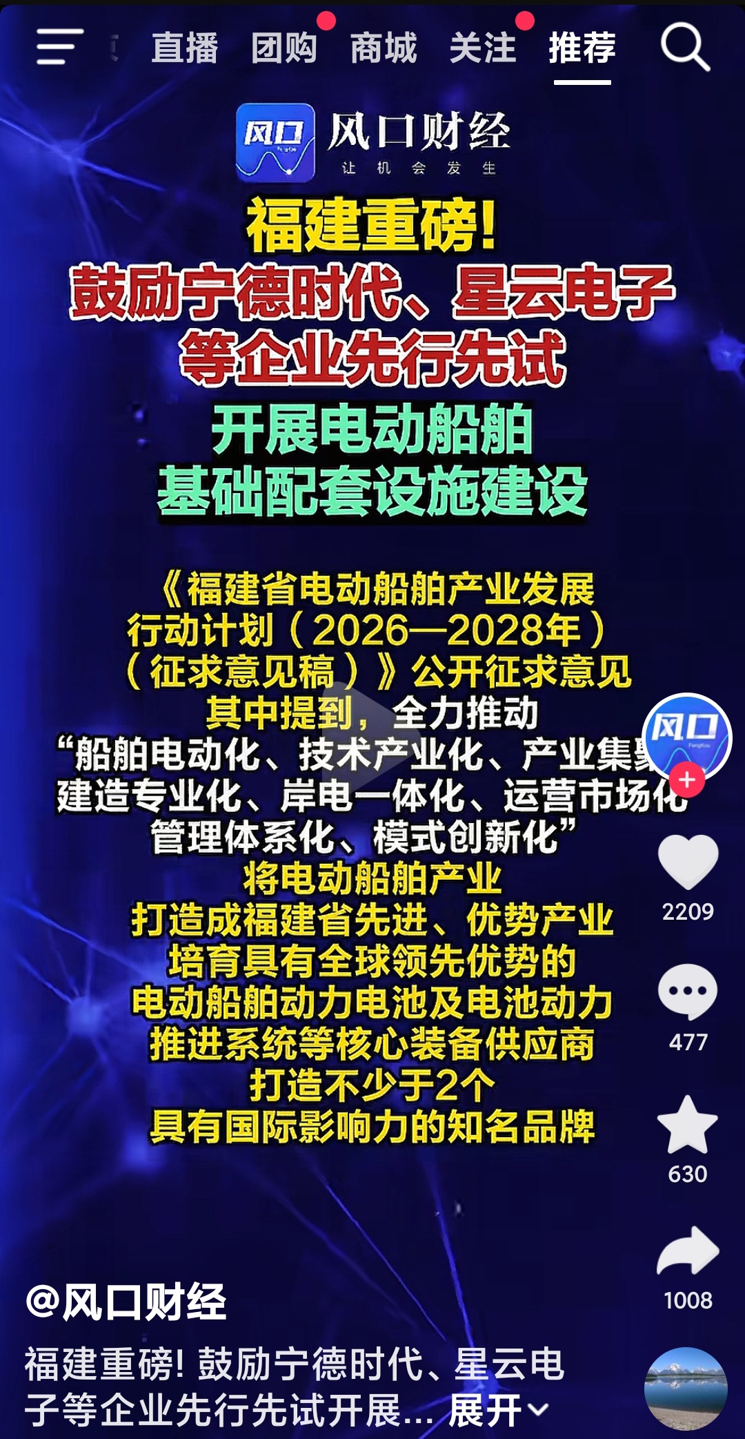 $太阳电缆(SZ002300)$ 福建电动船舶产业发展,利好太阳,明天飞。