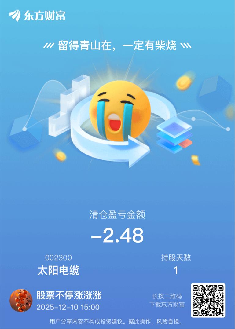 $太阳电缆(SZ002300)$ 大家好,昨天抄底,早盘水下割肉,正宗韭菜不容置疑,明天去海南板块了