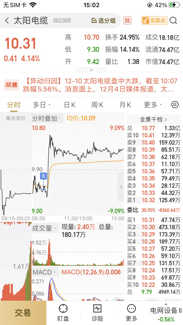$太阳电缆(SZ002300)$ 我被主力盯上了吗,一卖就涨,又被精准收割了