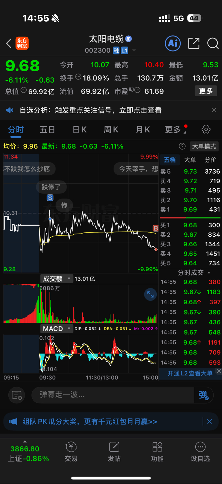 $太阳电缆(SZ002300)$ 不好意思 我来了
