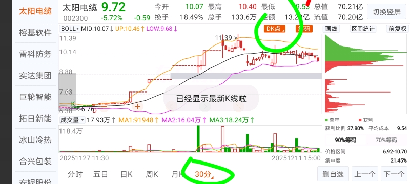日线,60分钟线,30分钟线,3个dk买卖点显示,行情还没有结束,明天占上9.9