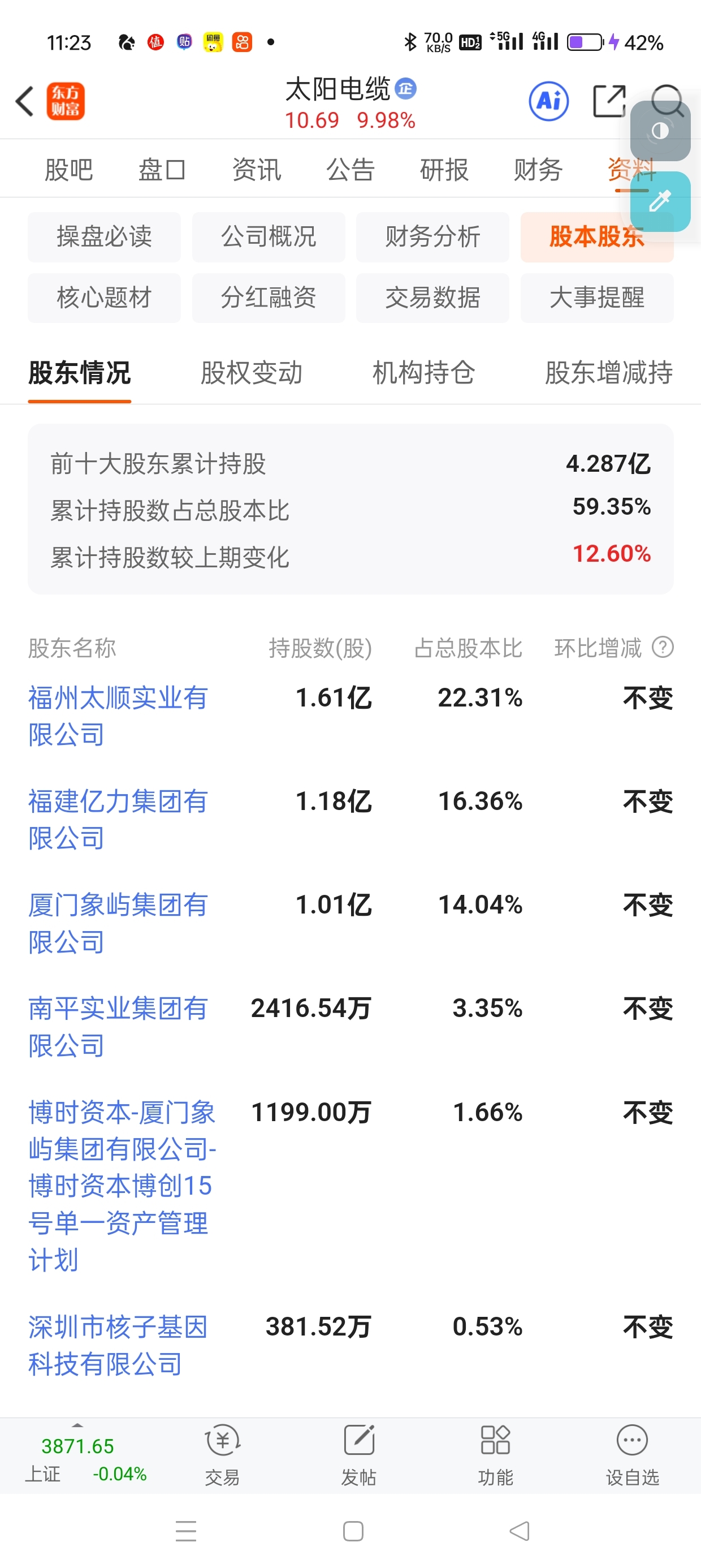 $太阳电缆(SZ002300)$ 买不到的朋友去买厦门象屿呀,第三大股东,业绩也好。最近回调了很多,大家去买呀。