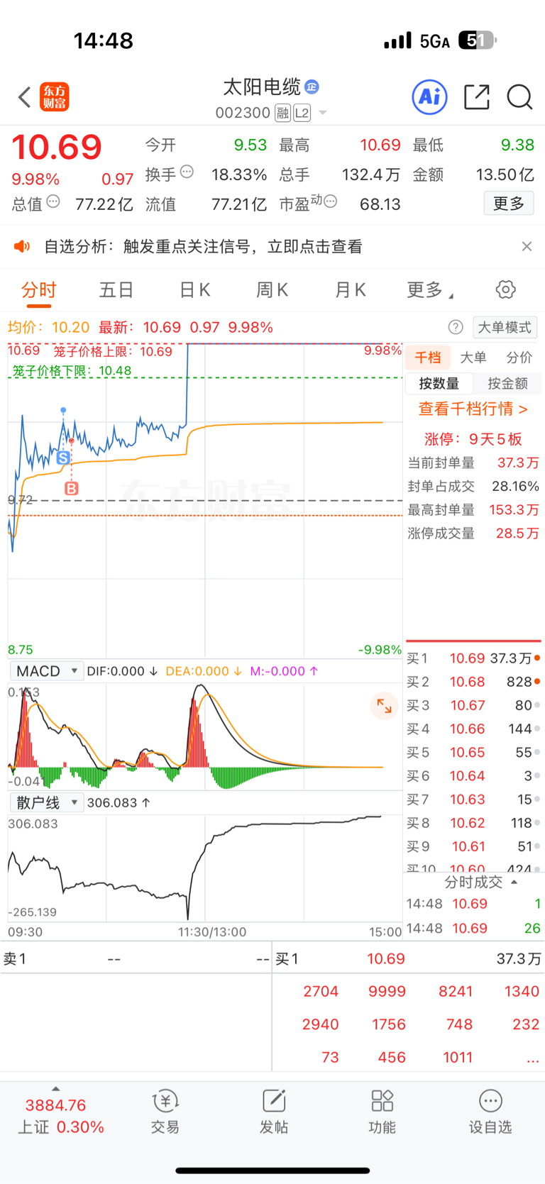 $太阳电缆(SZ002300)$ 这样子好吗。