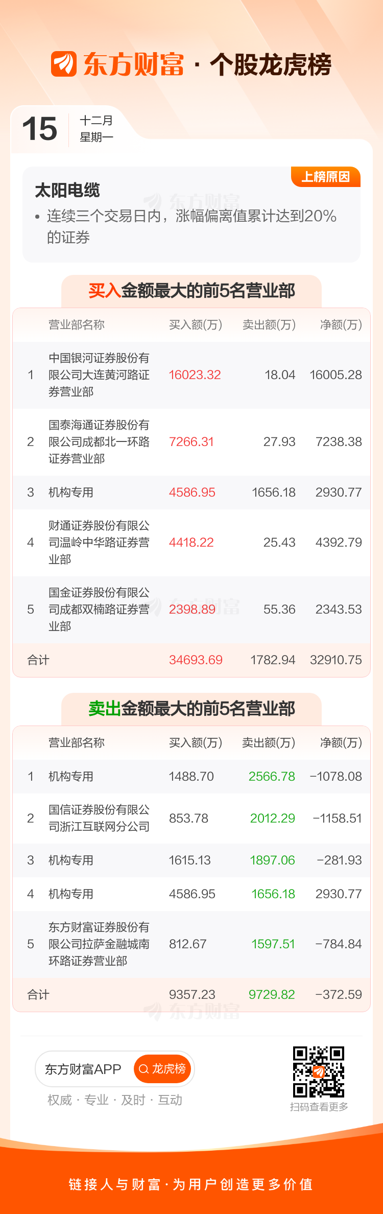 太阳电缆(002300)龙虎榜数据(12-15)
