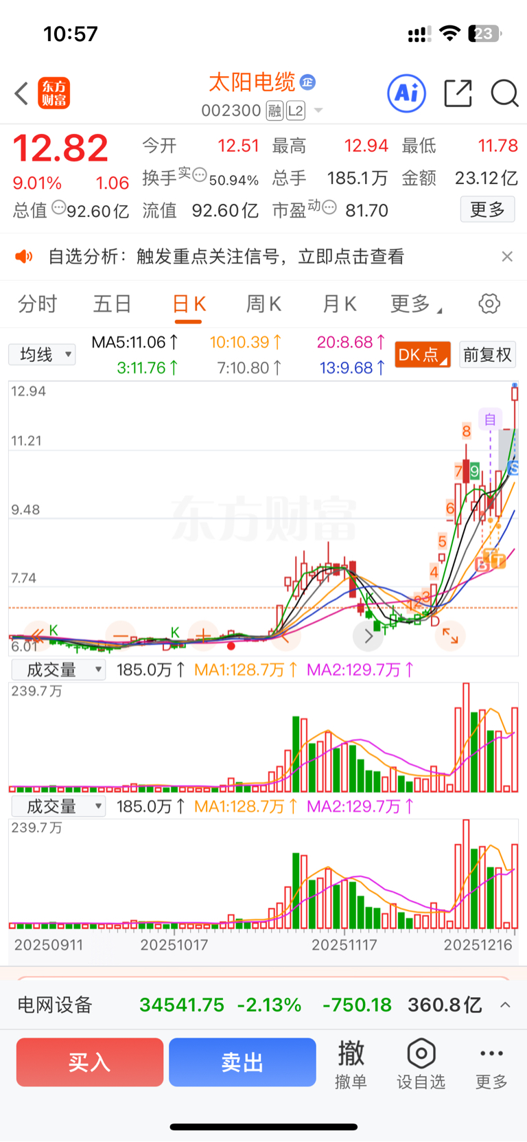 $太阳电缆(SZ002300)$ 买在无人问津时,卖在人声鼎沸时