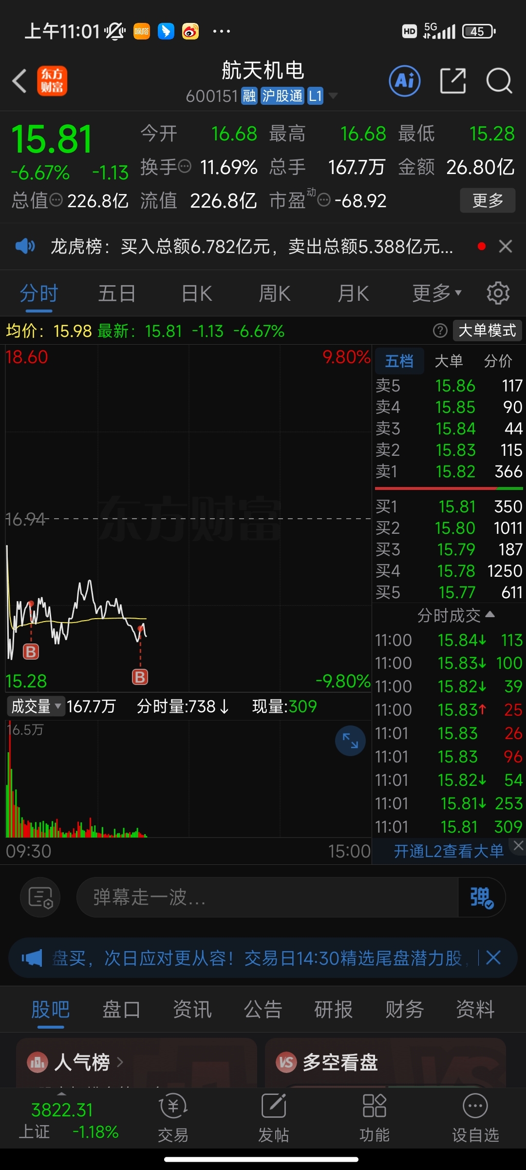 $航天机电(SH600151)$ 最后加一笔,不动了!明天看修复