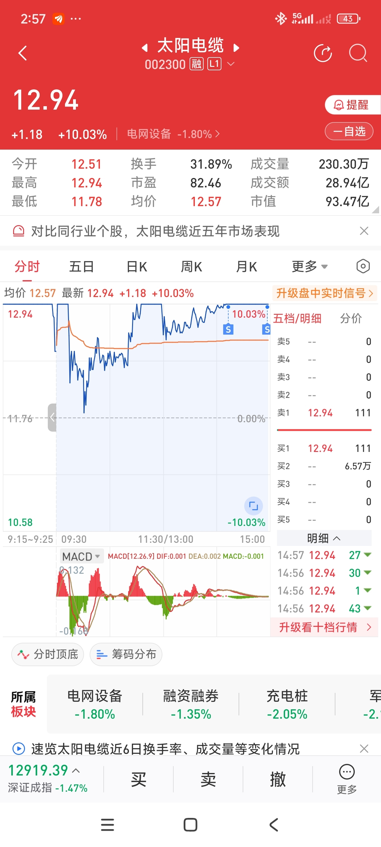 $太阳电缆(SZ002300)$ 今天封单有点低,落袋为安,再跑5000股,祝各位明天发财