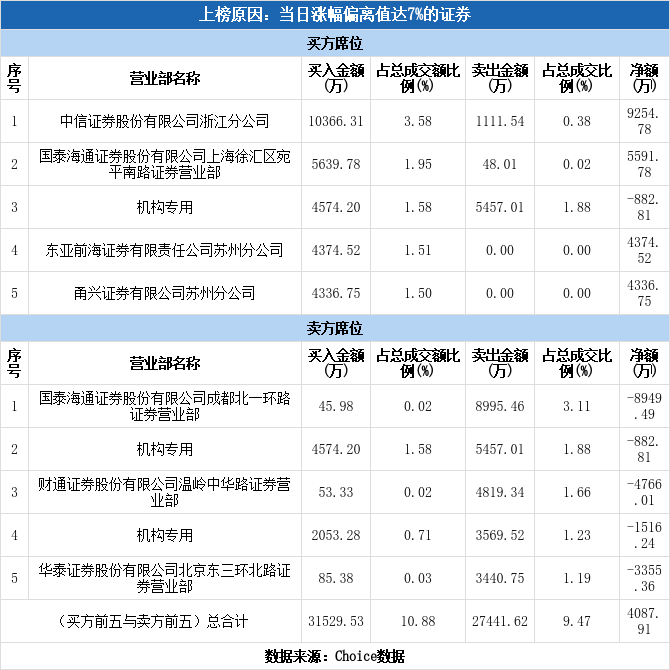 多主力现身龙虎榜,太阳电缆涨停(12-16)