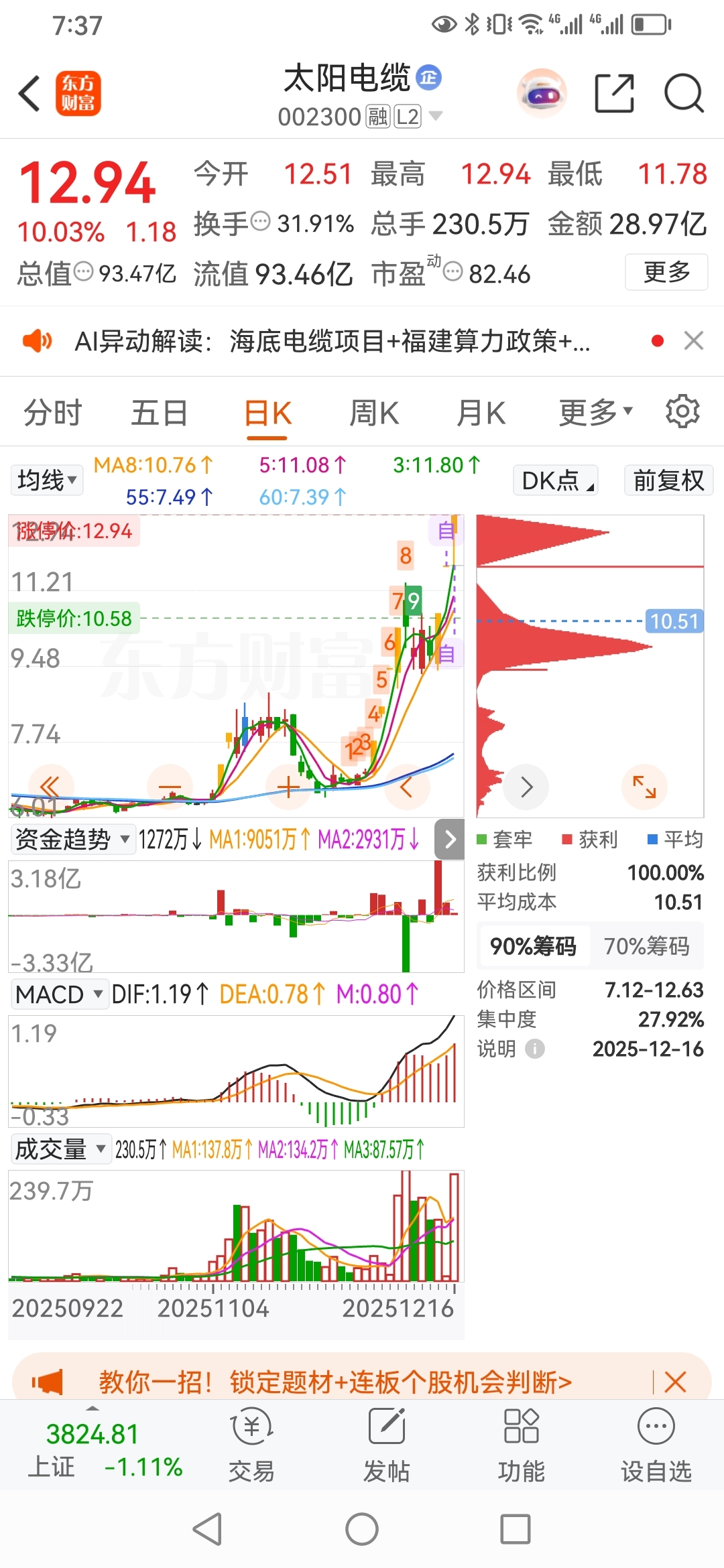@妙想题材分析太阳电缆军哥太阳电缆002300
