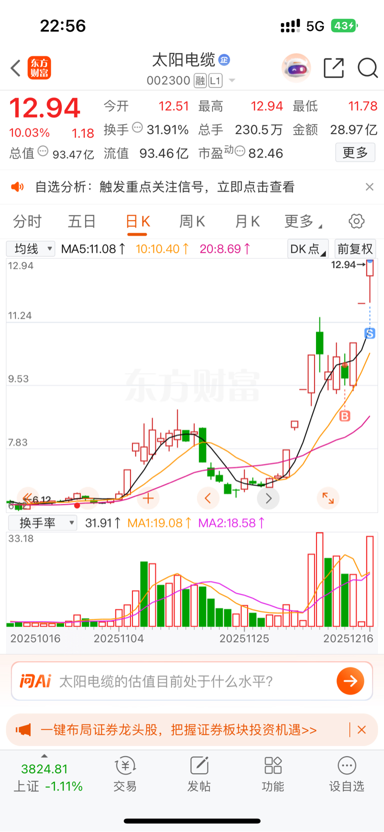 $太阳电缆(SZ002300)$ 先走咯,袋袋平安,祝各位明天大涨!