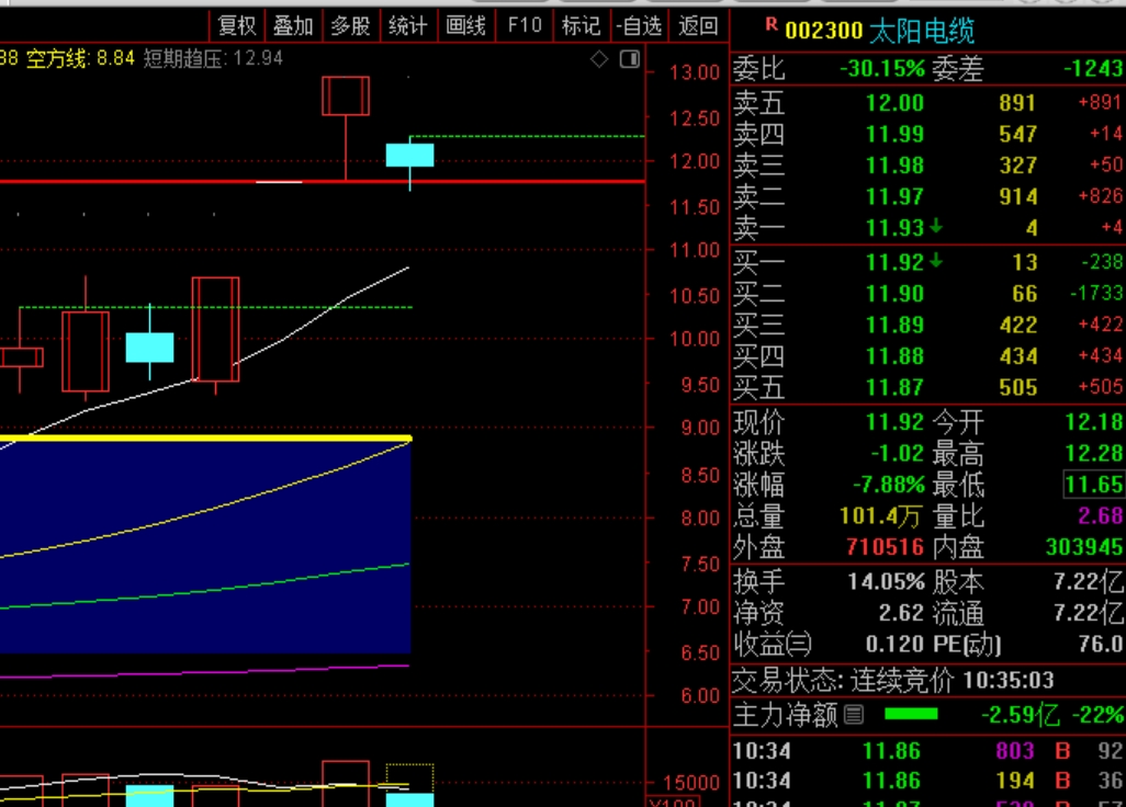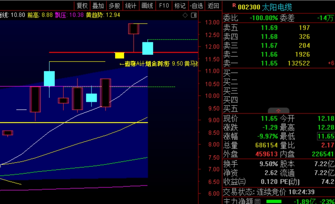 太阳电缆在跌停板附近先买入第一笔,只要不打死都可以,如果有需要的话第二笔在后面几