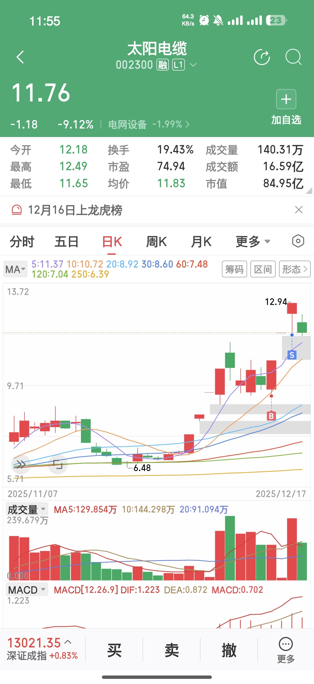 $太阳电缆(SZ002300)$ 搞个半天,我还以为我卖飞机了了