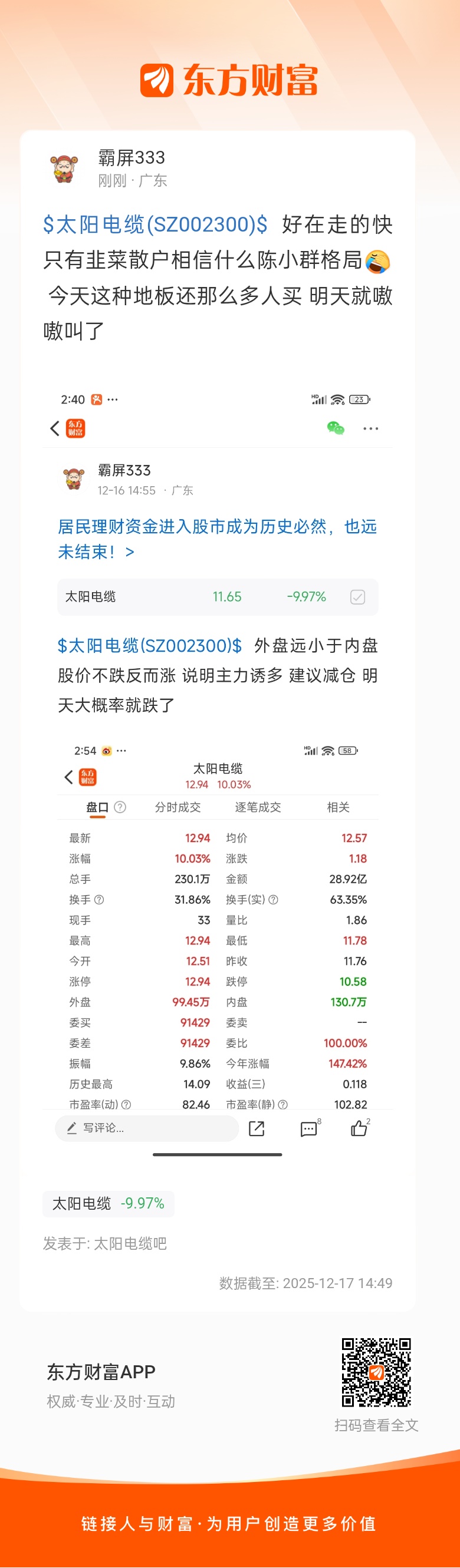 温馨提示: 1.根据《证券法》规定,禁止编造、传播虚假信息或者误导性信息,扰乱证券市场;2.用户在本社区发表的所有资料、言论等仅代表个人观点,与本网站立场无关,不对您构成任何投资建议。用户应基于自己的独立判断,自行决定证券投资并承担相应风险。《东方财富社区管理规定》