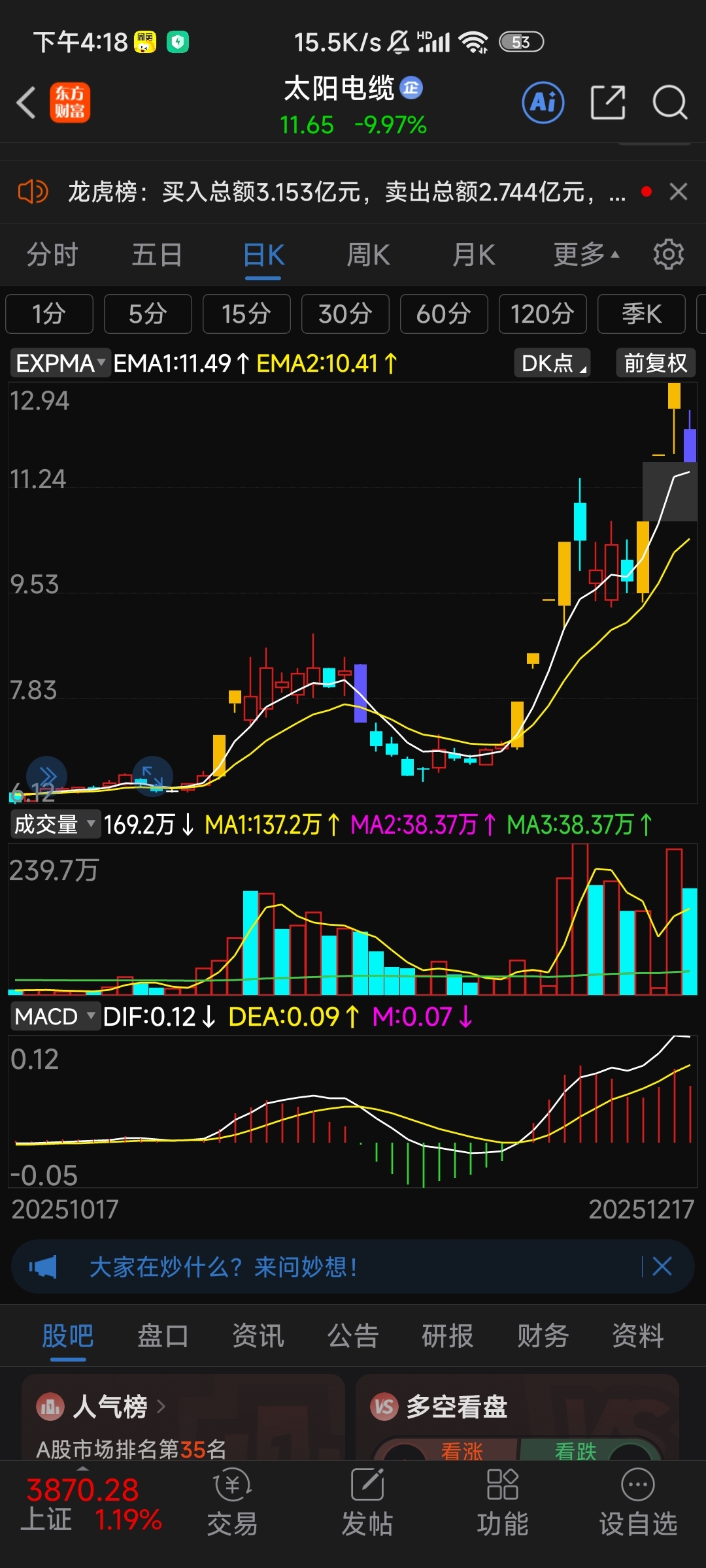 温馨提示: 1.根据《证券法》规定,禁止编造、传播虚假信息或者误导性信息,扰乱证券市场;2.用户在本社区发表的所有资料、言论等仅代表个人观点,与本网站立场无关,不对您构成任何投资建议。用户应基于自己的独立判断,自行决定证券投资并承担相应风险。《东方财富社区管理规定》
