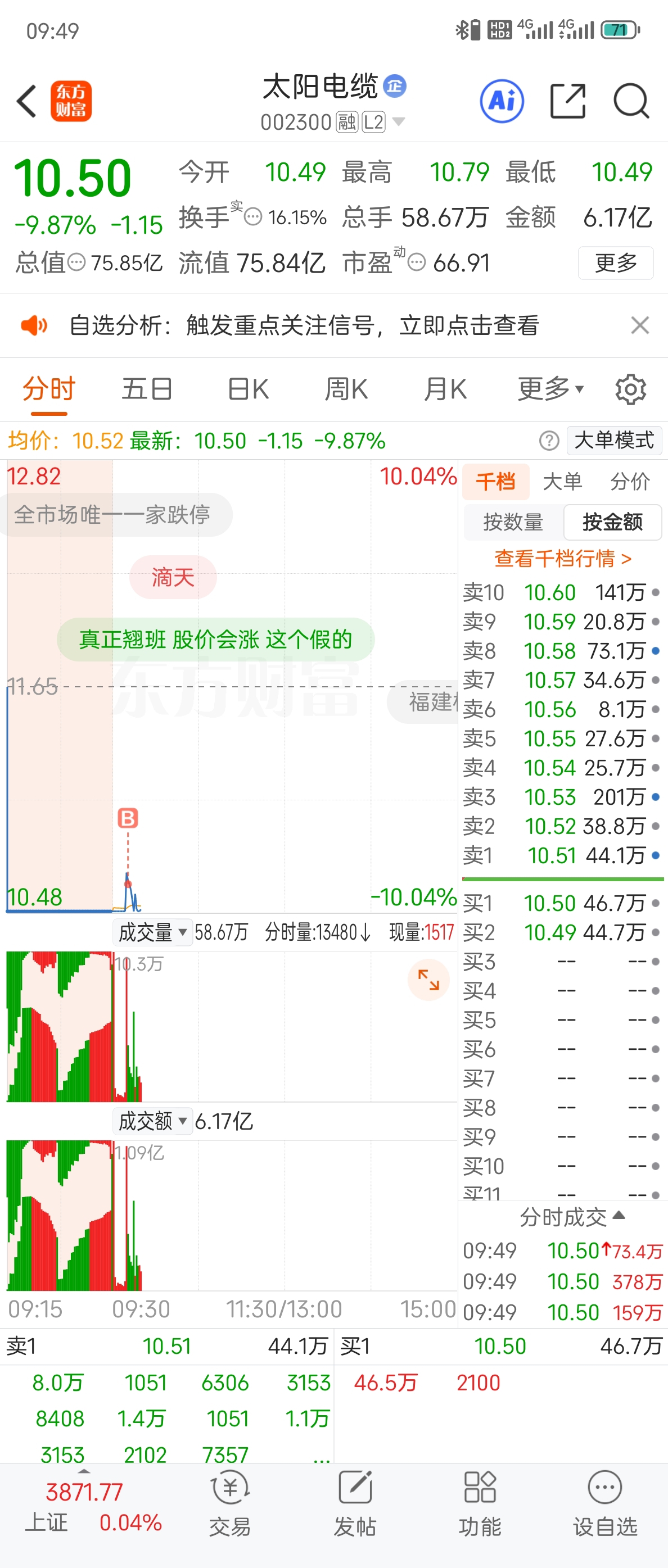 $太阳电缆(SZ002300)$ 被我买蹦了?