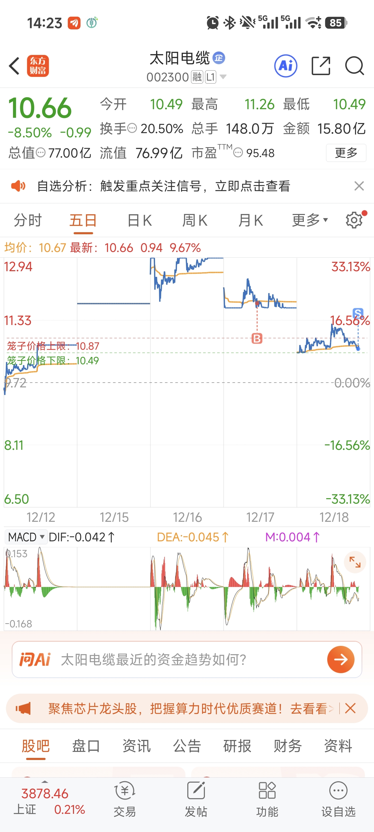 $太阳电缆(SZ002300)$ 现在的大a是越抄越跌
