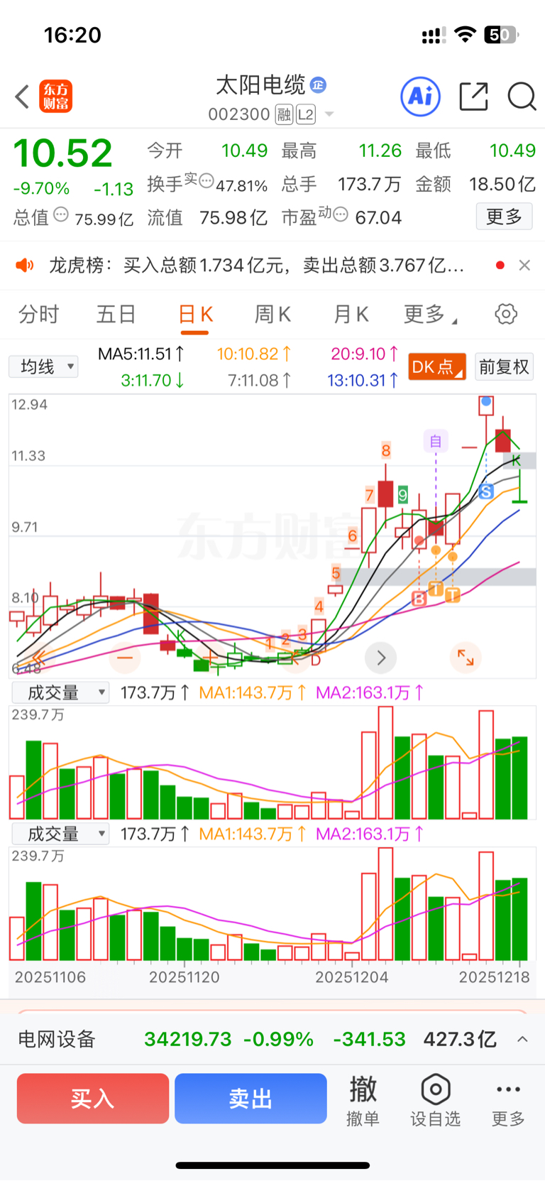 $太阳电缆(SZ002300)$ 回来看看兄弟们,明天可以积极做多了