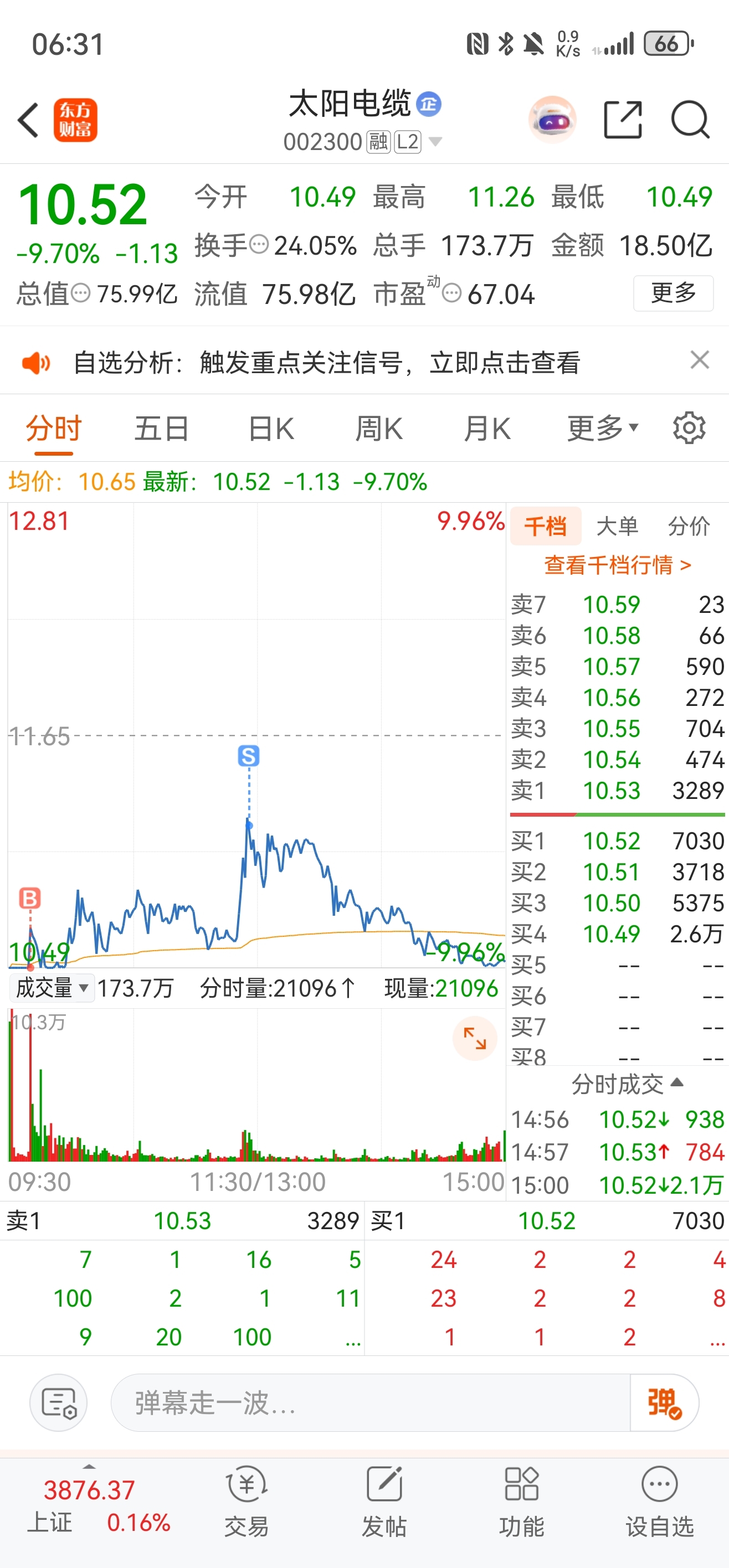 $太阳电缆(SZ002300)$ 昨天抄底,今天被抄家了,真不能随便抄底啊