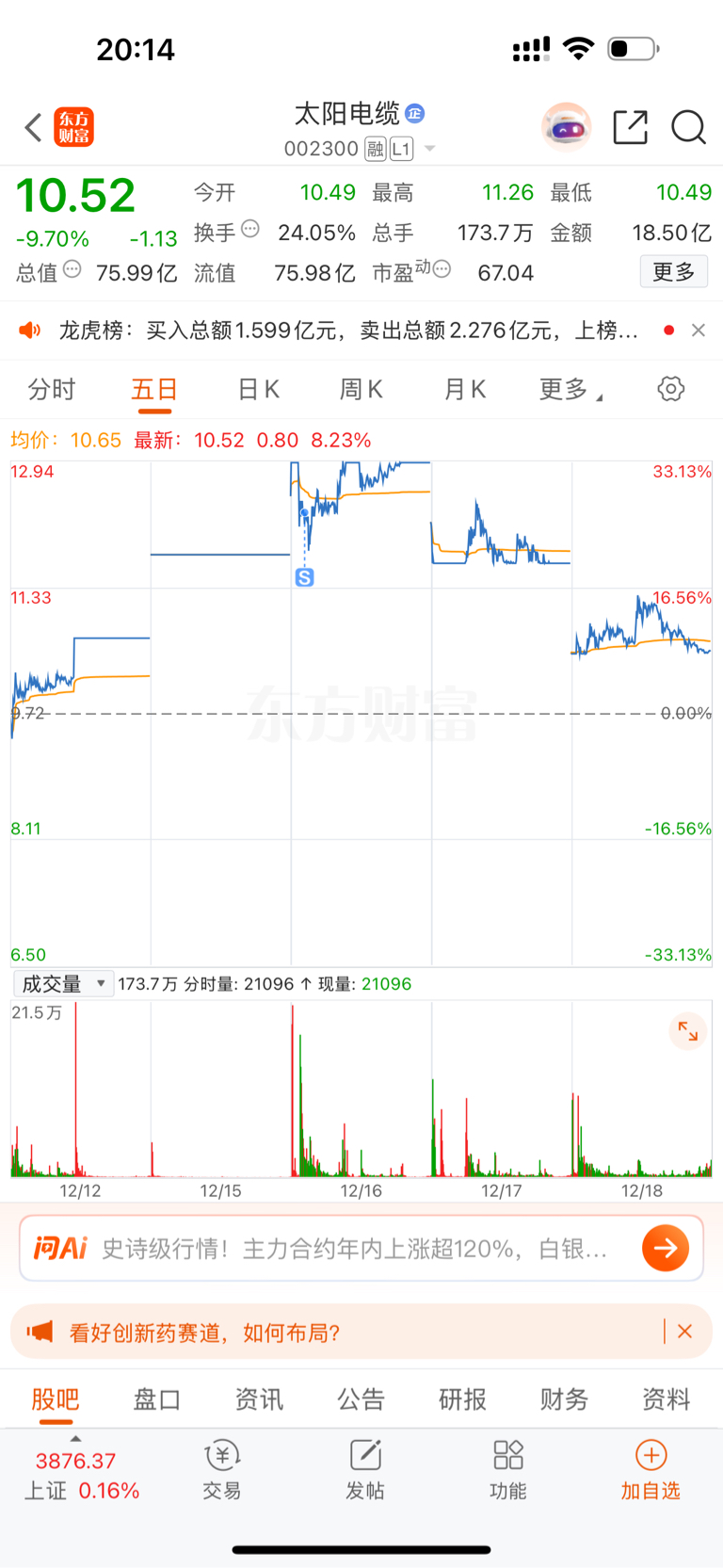 $太阳电缆(SZ002300)$ 强不强,你说了算