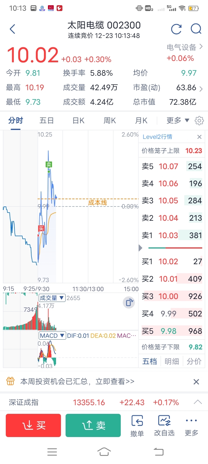 $太阳电缆(SZ002300)$ 昨天10元入手,今天做踢,做踢