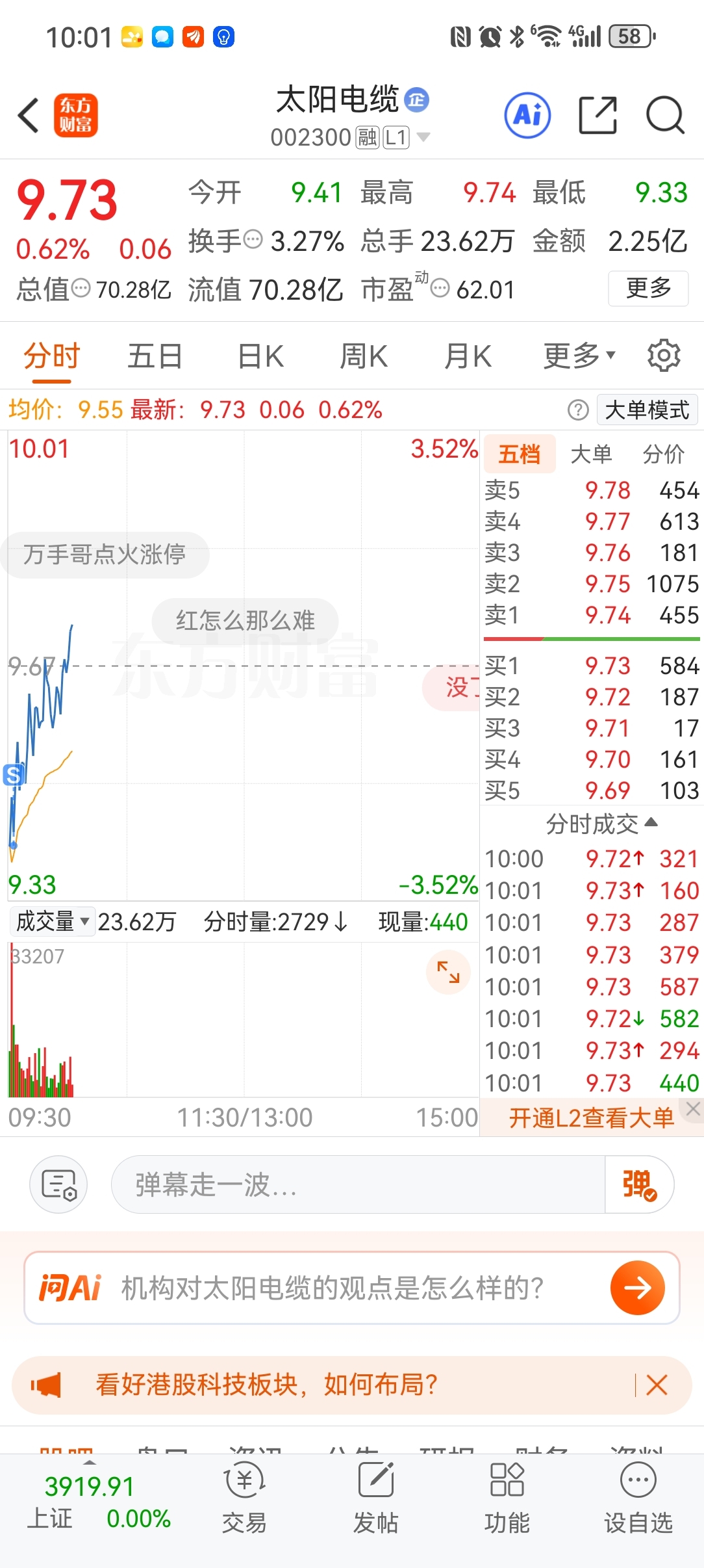 $太阳电缆(SZ002300)$ 卖在最低点