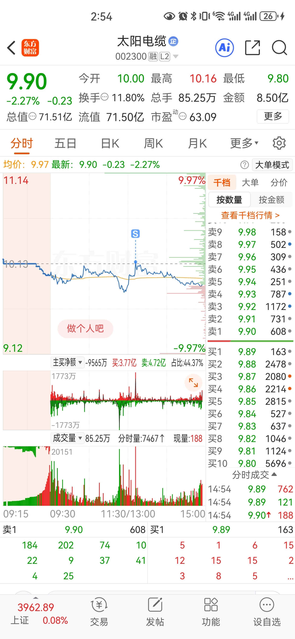 $太阳电缆(SZ002300)$ 终于让我有一次卖对位置了。太不容易了,以前不是卖飞了就是卖低了。