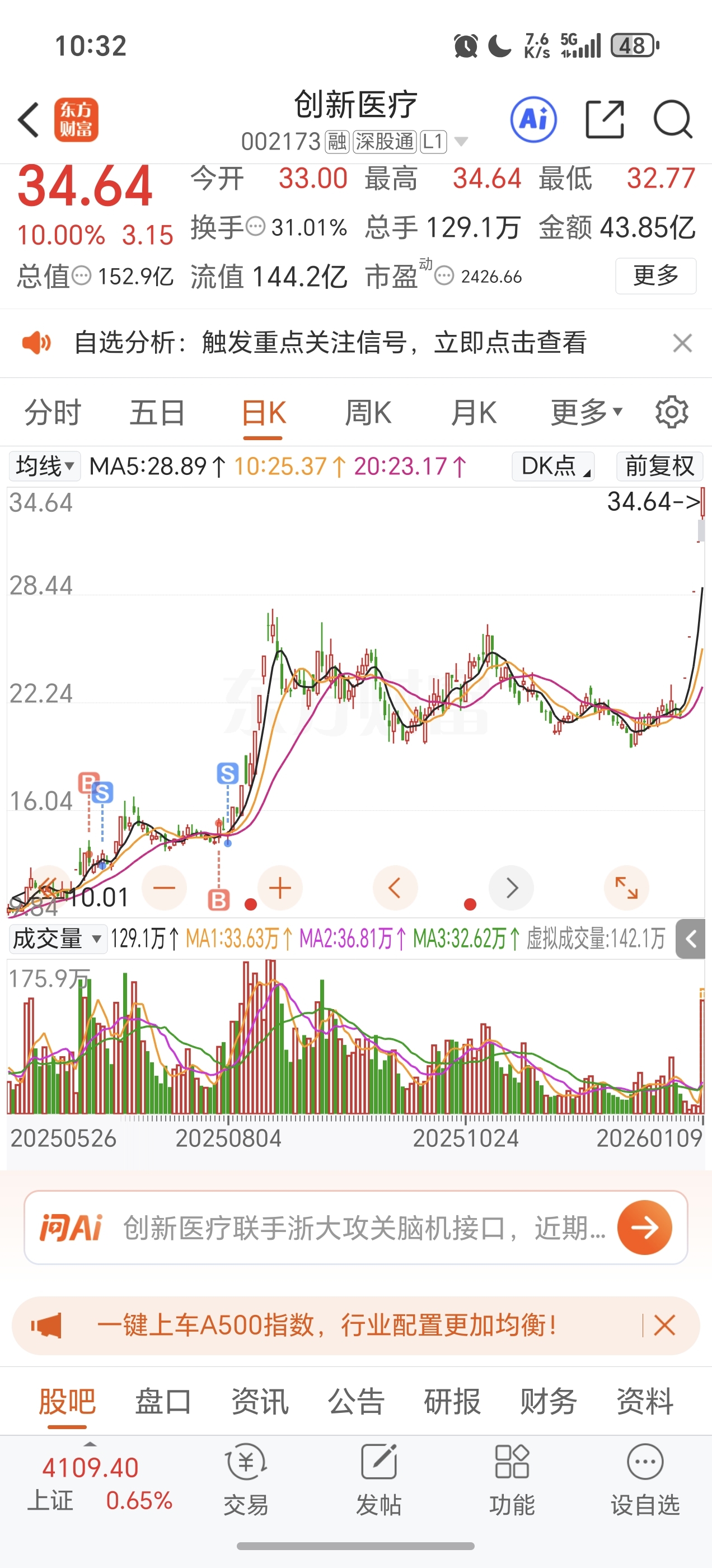 昨天4个点卖了去中衡了。韭菜当太久了。亏太多了。