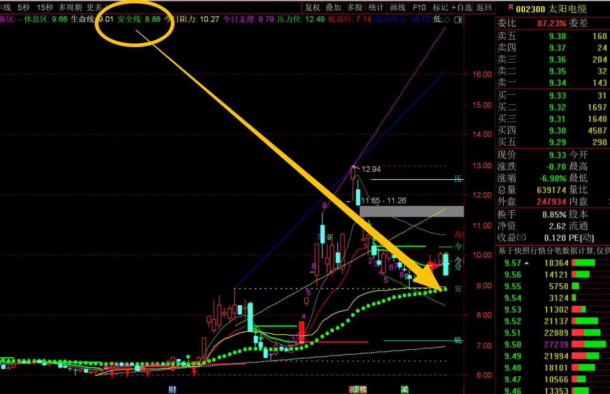 $太阳电缆(SZ002300)$ 近期走势不算强,主要是前期冲高回落后,没有很强的反弹走势,短线这里再次回落,明显就弱势了,接下来重点就看脚底安全线8.86位置的支撑情况,能稳住就还能看震荡,有效跌破就需要大幅减仓应对破位风险了。#复盘记录# #炒股日记#