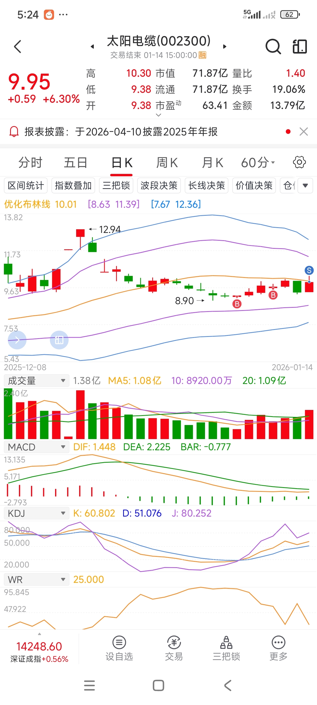 $太阳电缆(SZ002300)$ 我玩不起了,走了
