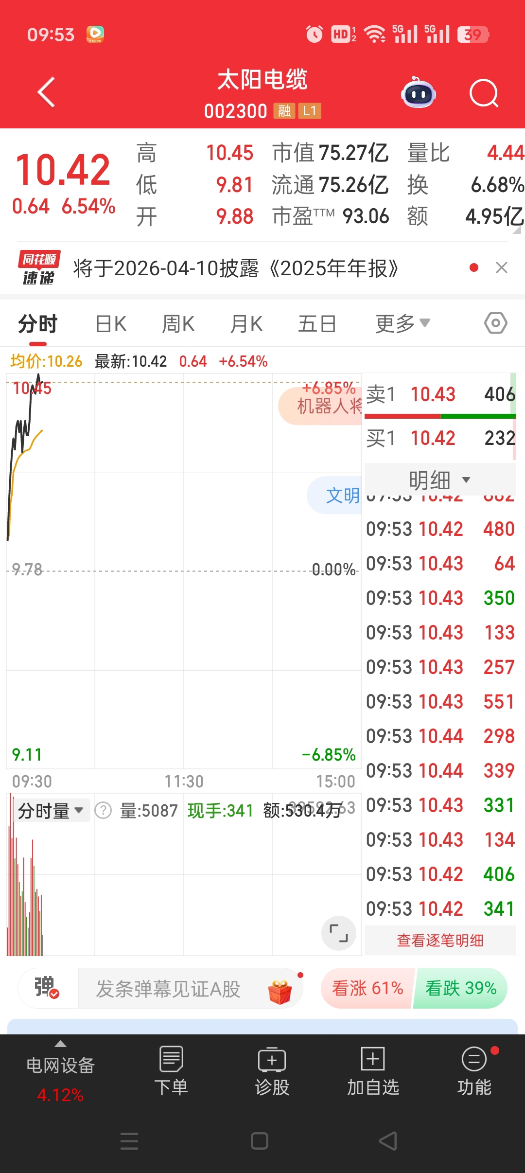 $太阳电缆(SZ002300)$ 兄弟们,早盘冲击6个多点,能否涨停呢?
