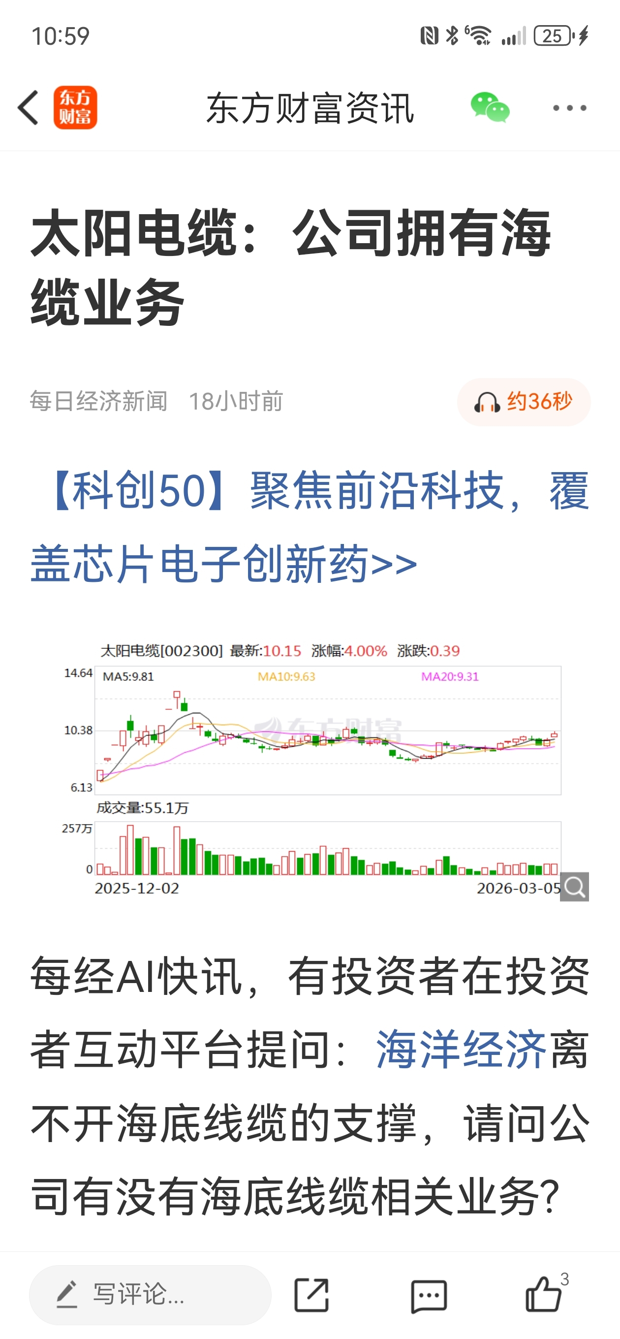 $太阳电缆(SZ002300)$ 这是?汉懒涨停你也起来吧,晒晒太阳让大家认识一下呗