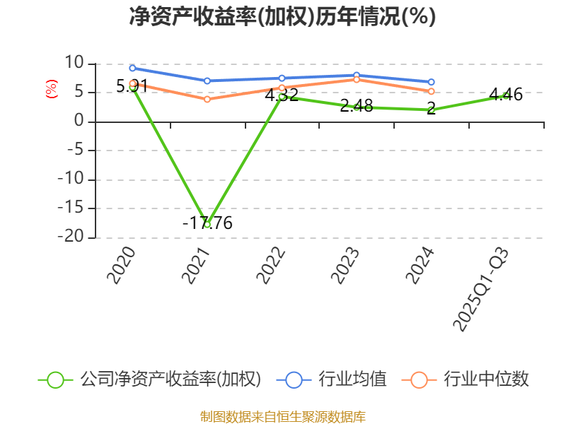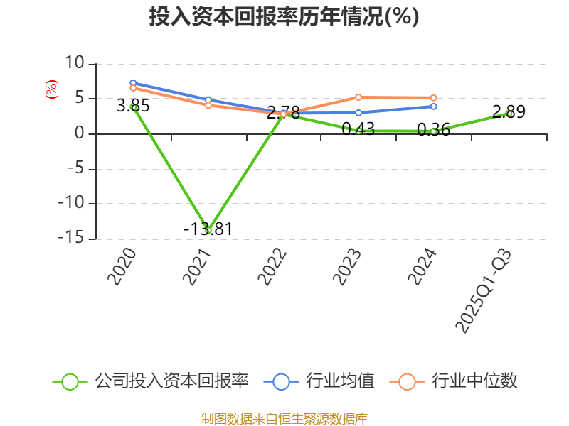 盈利能力方面, 2025年前三季度公司加权平均净资产收益率为4.46%,同比下降0.52个百分点。公司2025年前三季度投入资本回报率为2.89%,较上年同期下降0.08个百分点。