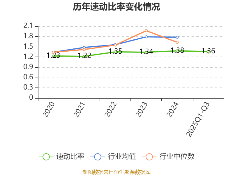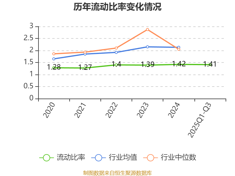 2025年前三季度,公司流动比率为1.41,速动比率为1.36。