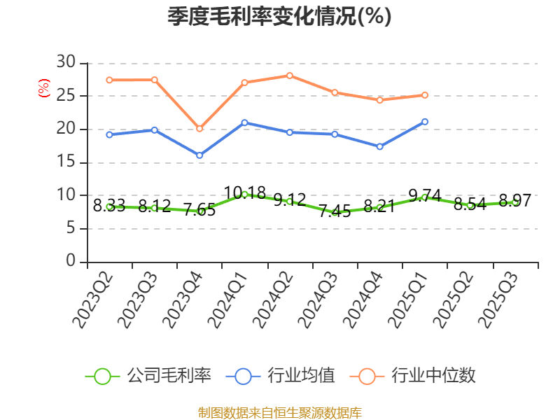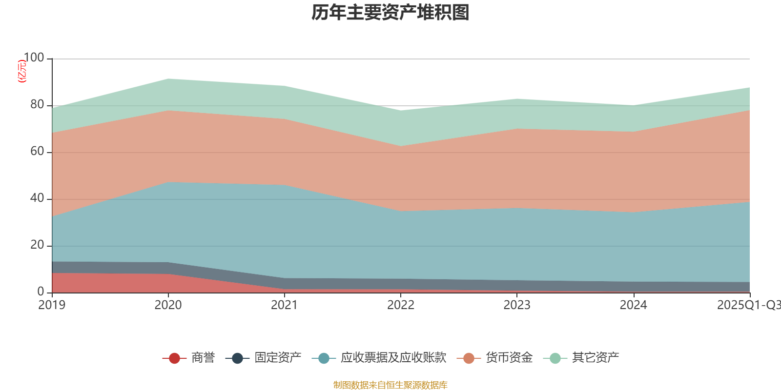 资产重大变化方面,截至2025年三季度末,公司应收票据及应收账款较上年末增加15.44%,占公司总资产比重上升2个百分点;货币资金较上年末增加13.9%,占公司总资产比重上升1.71个百分点;预付款项较上年末减少47.82%,占公司总资产比重下降0.98个百分点;其他非流动资产较上年末减少92.89%,占公司总资产比重下降0.98个百分点。