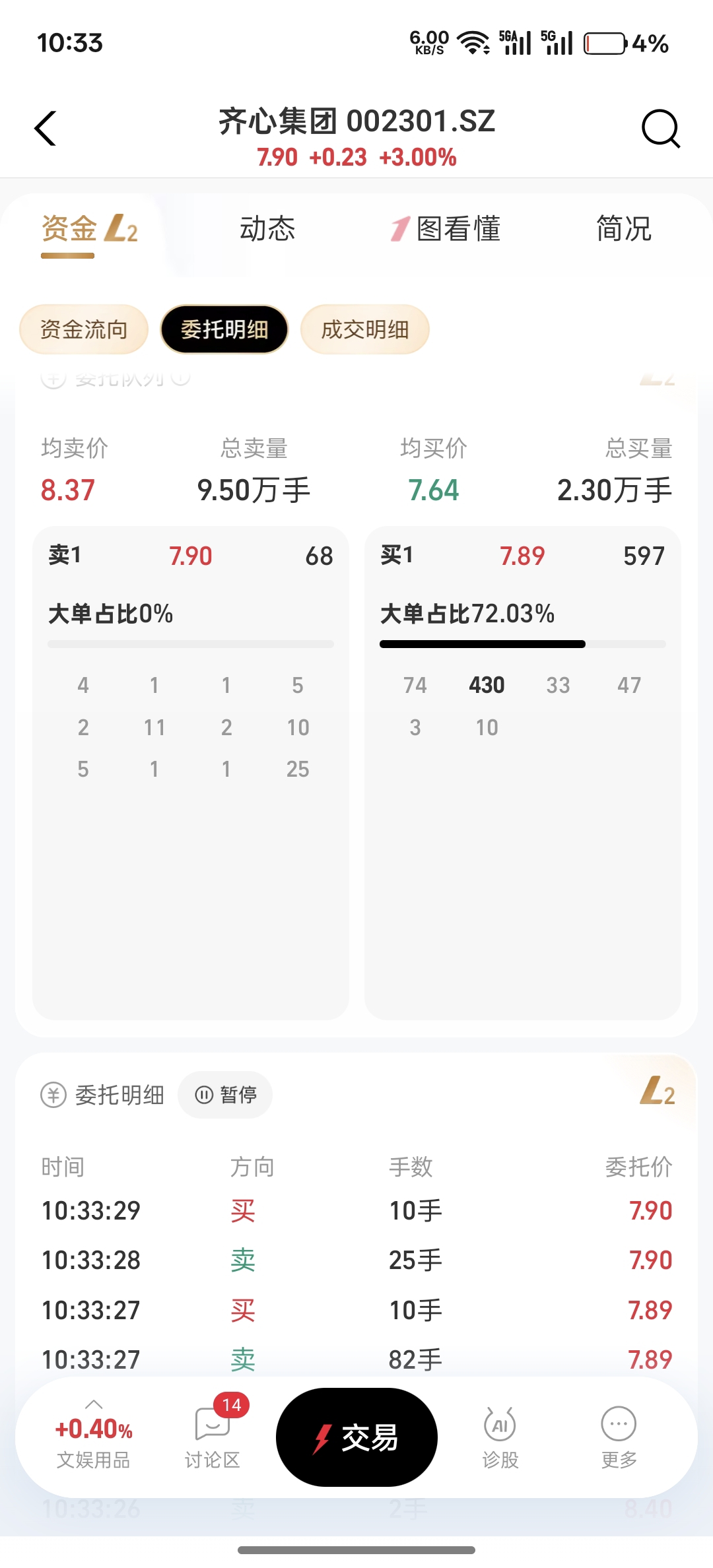$齐心集团(SZ002301)$ 委托9.5万手 均价8.37 全在板上等着呢?上不去了