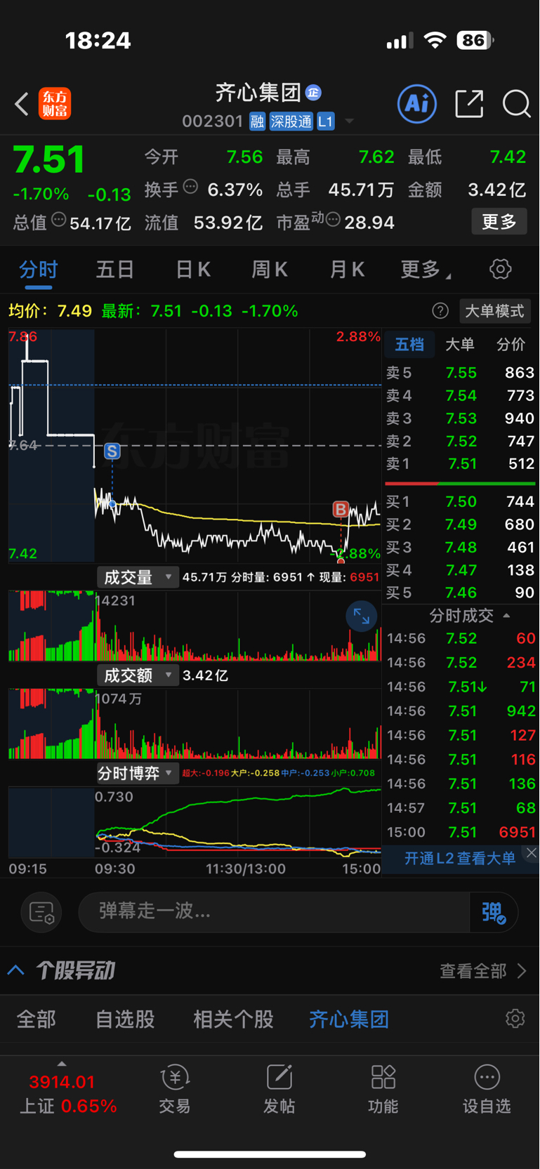 $齐心集团(SZ002301)$ 绿的我都开始做T了