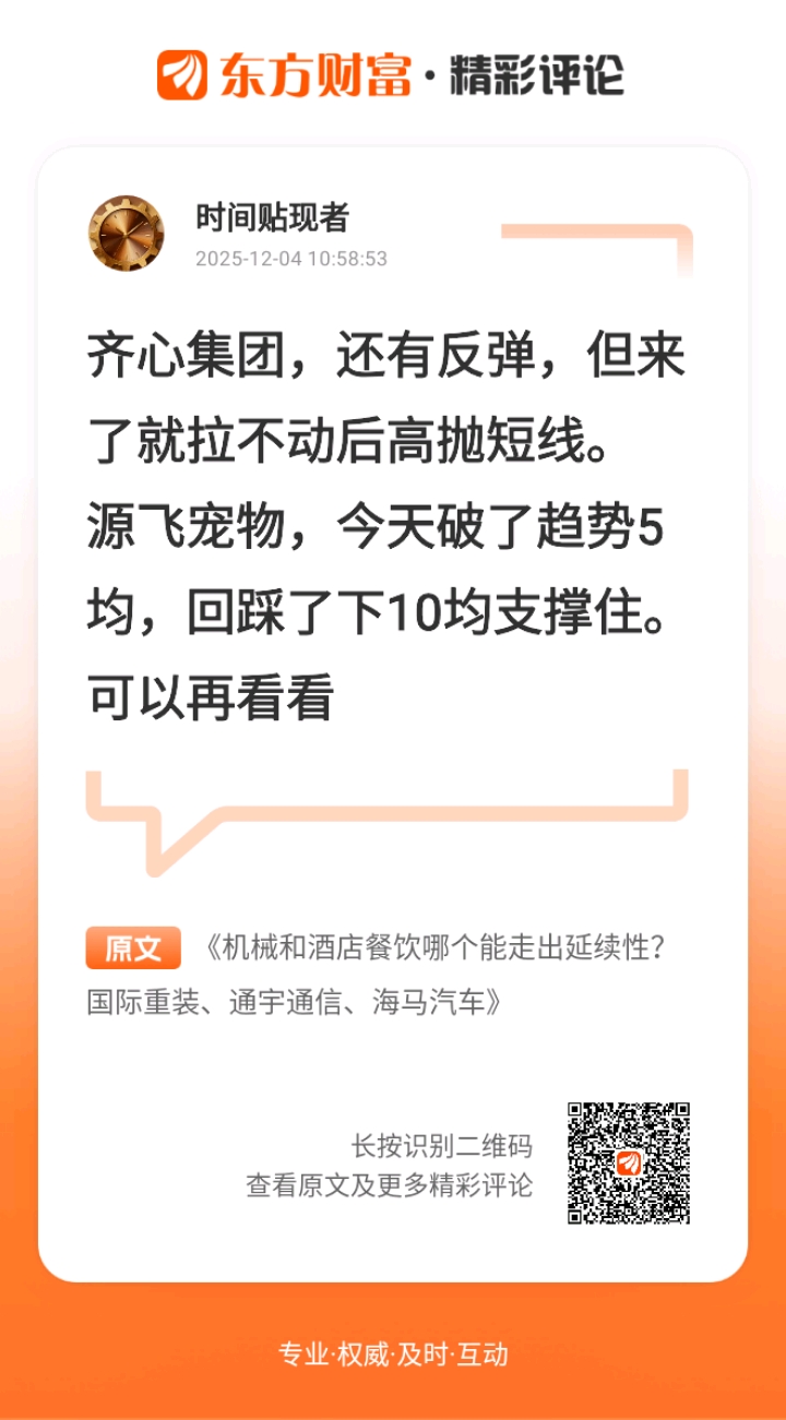 天元股份:前期的横盘震荡,走的都比较稳,近期的节奏起伏活跃,跟以前的节奏有较大差异,看会不会去回补12月1日的跳空缺口,如果回补后再收回上去是属于健康且偏强的走法,如果回补后收不回去,可能就回到前期较磨时间的小幅震荡式节奏;公司作为电商包装服务商,客户涵盖韵达、Shein等头部企业,可降解材料业务受政策支持,柬埔寨基地投产助力海外拓展;双十一期间行业需求或对业绩形成阶段性支撑,需跟踪实际订单落地情况。