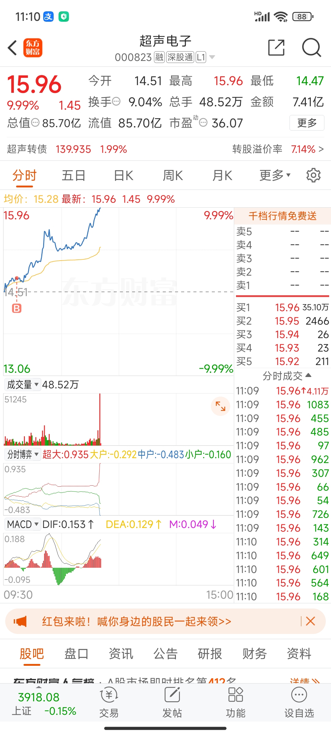 齐心赚了跑了,就是为了套现买超声电子,现在超声也涨停了,哪些问我拍断大腿,后悔吗
