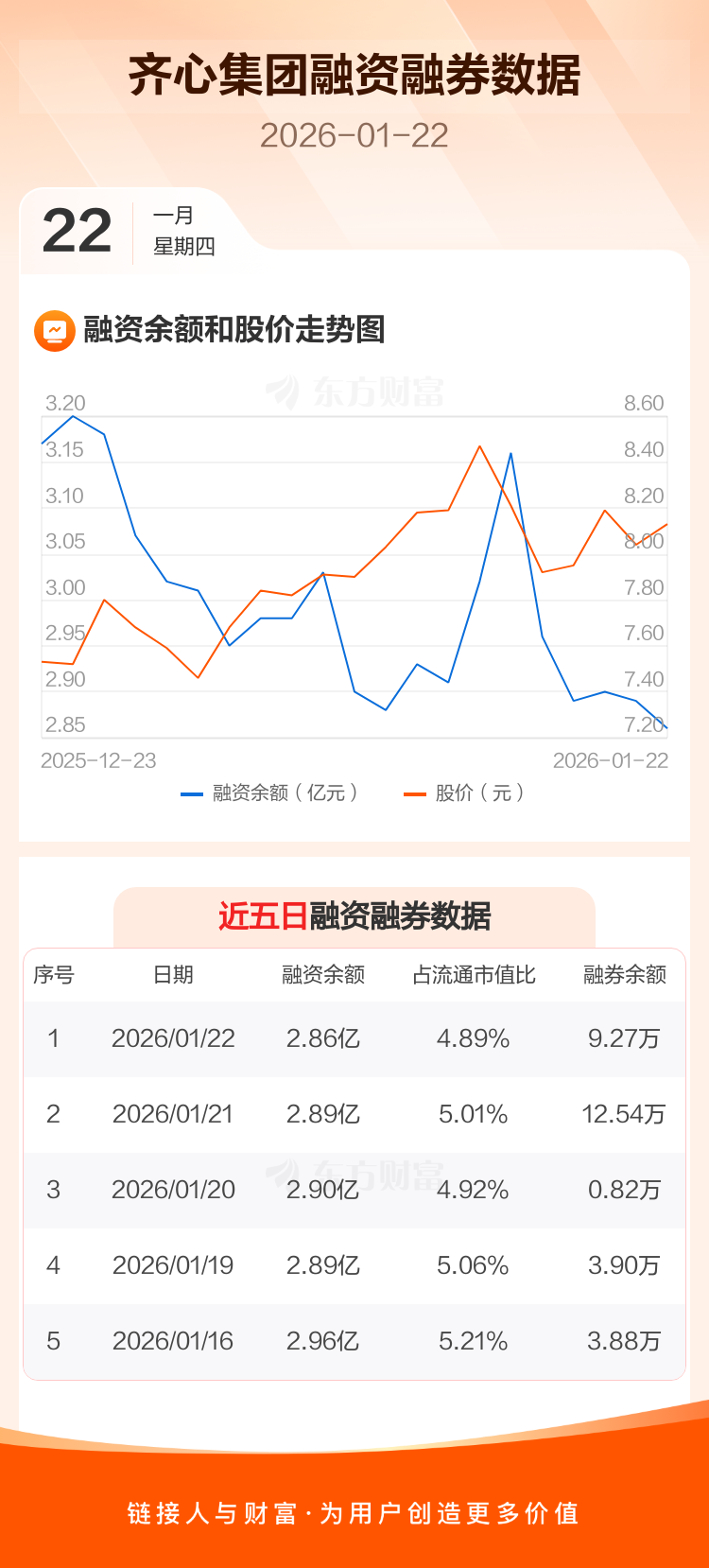 交易所最新数据显示,齐心集团于2026年1月22日获融资买入2570.24万元,融资偿还2936.04万元,当日融资净偿还365.8万元。目前,该股融资余额2.86亿,占流通市值比例为4.89%。