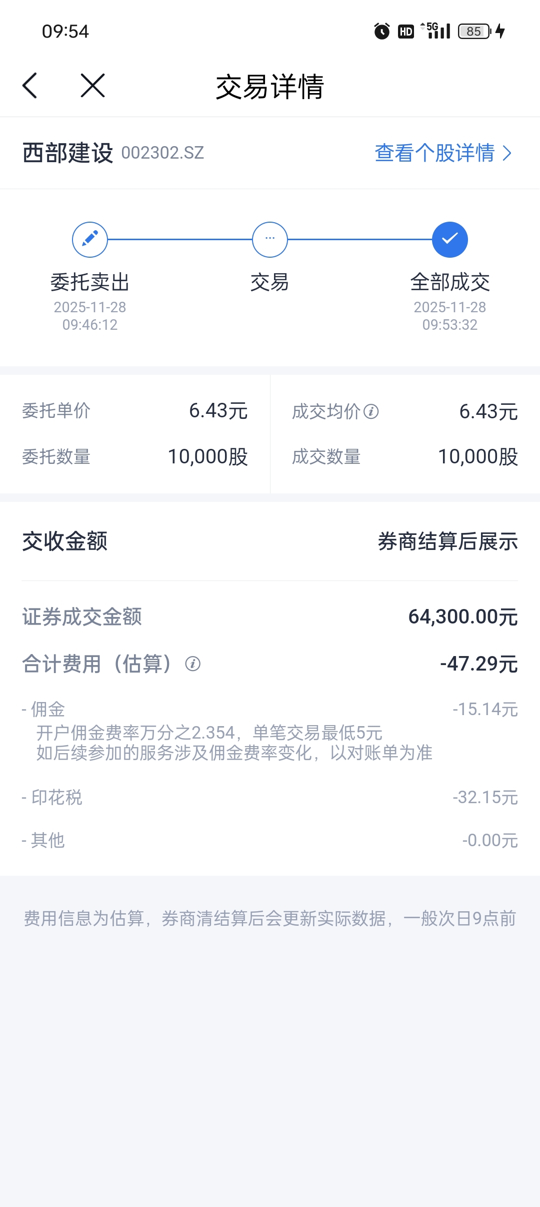 $西部建设(SZ002302)$ 43走了,赚了几百块