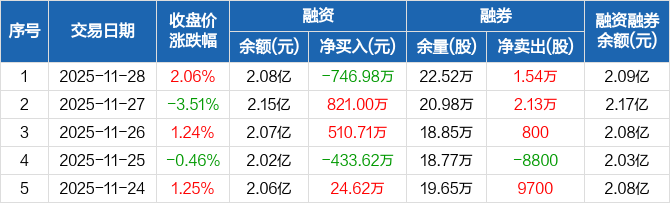 西部建设:融资净偿还746.98万元,融资余额2.08亿元(11-28)