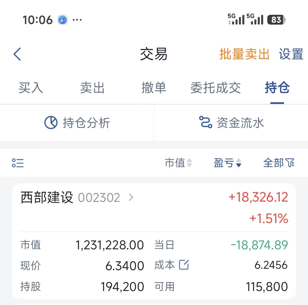 每一次下跌都是送钱,继续加仓,西部建设你跌就是,仓位一层都不到,就等你跌
