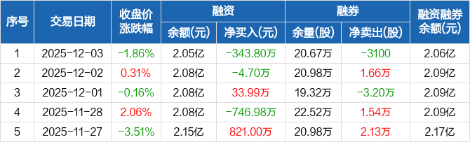 西部建设:融资净偿还343.8万元,融资余额2.05亿元(12-03)